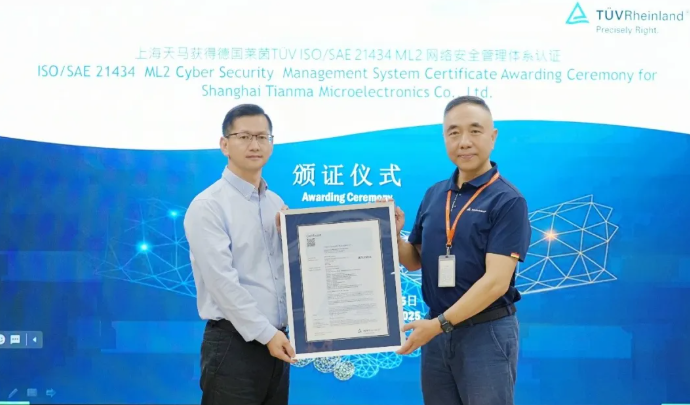 國(guó)際權(quán)威認(rèn)證!天馬獲頒ISO/SAE 21434汽車網(wǎng)絡(luò)安全管理體系認(rèn)證